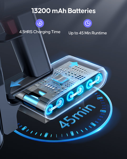 Powerffy 400W/30Kpa Cordless Vacuum Cleaner, 45 mins Rechargeable Stick Vacuum with 1.2 L Dust Cup,80000Rmp Powerful Motor Handheld Stick Vacuum for Hard Floor,Carpet and Pet Hair (N10)