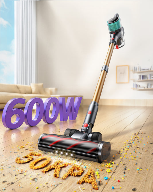 Cordless Vacuum Cleaner 600W 50KPA Powerful Suction 65 Mins Stick Handheld Vacuum Cleaners Green LED Anti-Tangle Brush Aromatherapy 1.8L Dust Cup One-Touch Empty for Carpet/Hardwood/Pet Hair/Car/Stair